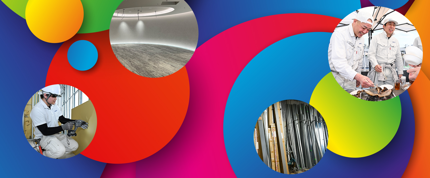 商業施設などの**「内装工事」**を手がける会社です。